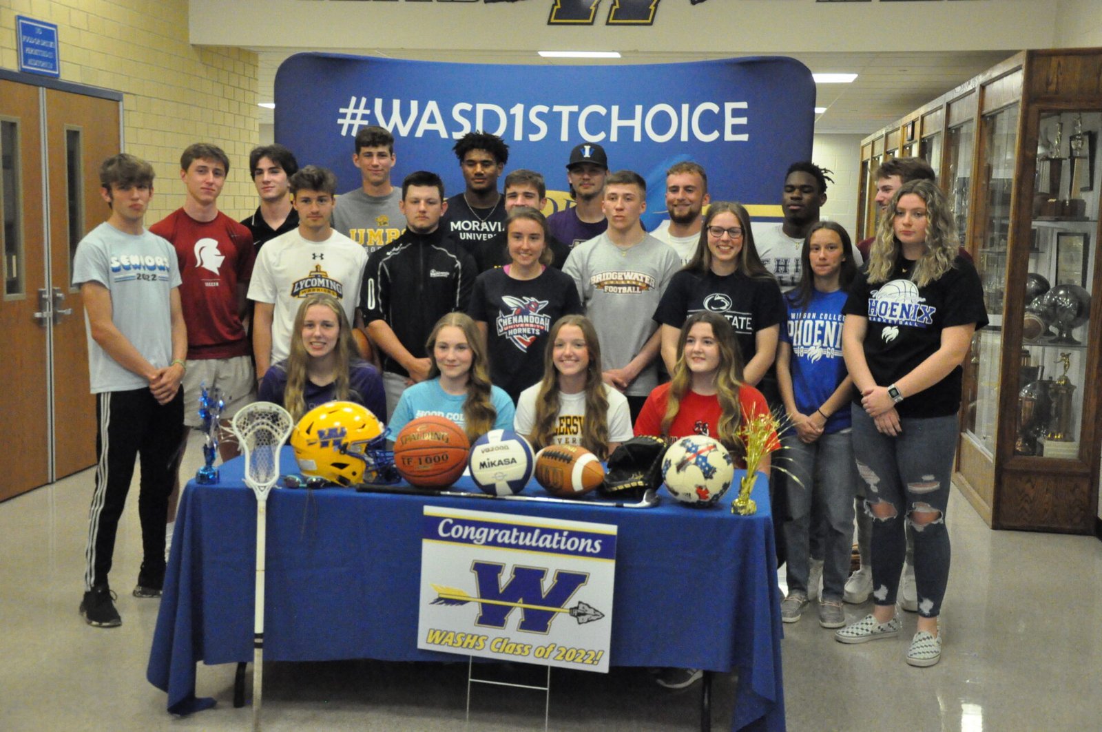 WAYNESBORO–Nearly two dozen Waynesboro Area Senior High School student-athletes gathered at the high school recently to hold college signings in a variety of sports.