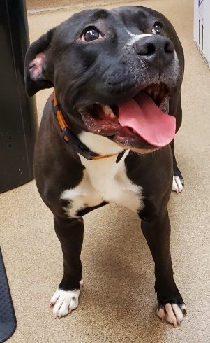 Magpie came to the shelter as a stray, and was very scared when she first arrived. With some time, baby talk, and treats Magpie learned to trust the staff. She has since come out of her shell and is a very silly girl! She does know sit, but you have to get her tail to stop wagging long enough for her to do so! She is a “velcro” pup with her people and wants to be wherever you are! Magpie loves to play in the outside play yard! She especially likes to play “keep away” which she thinks is great fun, however due to this we are requiring her potential home to have a fenced in yard so that Magpie has a safe area to run and have fun! Magpie is still on the shy side with new people, so potential adopters will need to meet with her several times to establish a relationship with her before she goes home with them. Due to no past history, an age restriction for children in the home may apply, so please discuss this with shelter staff. Could Magpie be the pup for you? Chance came into the shelter as a stray and we think he is about 10 months old. This guy weighs in at 56 pounds and is still growing. We think he might have Great Dane in him. Chance can be shy at first with new people, but with treats and encouragement he does gain confidence. He will need someone that can work with him on socialization. Chance is currently in his “awkward” teenage stage where he is all legs and is not quite sure what to do with them or himself! He is still a puppy, but is a rather large one that will need someone that understands the time and the patience that goes into training a young dog. Could you take a chance on Chance?