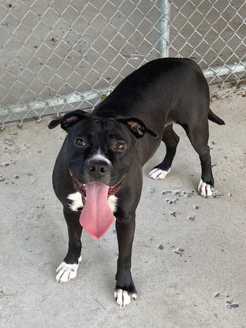 Magpie came to the shelter as a stray, and was very scared when she first arrived. With some time, baby talk, and treats Magpie learned to trust the staff. She has since come out of her shell and is a very silly girl! She does know sit, but you have to get her tail to stop wagging long enough for her to do so! She is a “velcro” pup with her people and wants to be wherever you are! Magpie loves to play in the outside play yard! She especially likes to play “keep away” which she thinks is great fun, however, due to this we are requiring her potential home to have a fenced-in yard so that Magpie has a safe area to run and have fun! Magpie is still on the shy side with new people, so potential adopters will need to meet with her several times to establish a relationship with her before she goes home with them. Due to no past history, an age restriction for children in the home may apply, so please discuss this with shelter staff. Could Magpie be the pup for you?