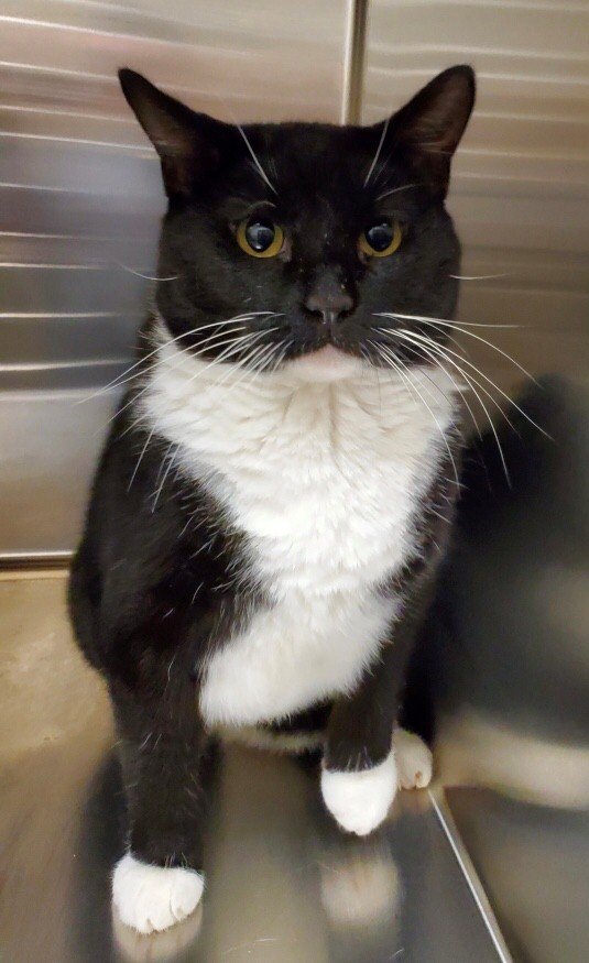Trey came into the shelter as a stray, so we don’t know a lot about him. We think he’s about 6 years old and when he first arrived, we noticed he had a problem with his foot. When we examined him, we discovered that Trey has a toe that was broken and sits up higher than the rest. Because of that, the toe nail had grown into the pad of his foot. We gave him antibiotics to help with the ingrown toe nail once it was removed. Trey will need someone who will keep a close eye on that toe to make sure this doesn’t happen again. He is a sweet guy who likes attention, but prefers to keep all his feet on the ground or be up with you on his own terms. Do you have the right spot for Trey?
