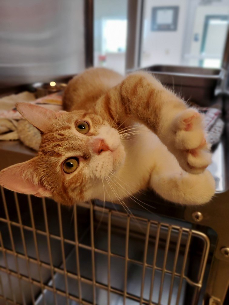 Cue Ball is a sweet, 3-year-old, orange-and-white guy who came into the shelter as a stray. He enjoys getting treats and loves getting attention! He can usually be found lounging in a soft bed and watching the world go by! Do you have the right spot for this cute Cue Ball?