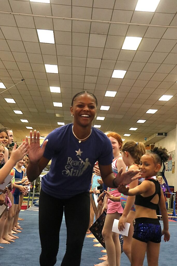 WAYNESBORO- NCAA Champion Katelyn Ohashi and NCAA Gymnast of the Year Trinity Thomas recently stopped at Rainbow Gymnastics in Waynesboro.