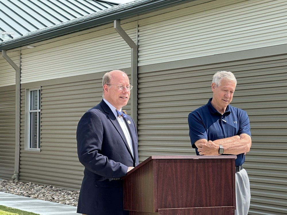 The open house began at 10 a.m. and festivities started in the back of the new building at 10:30 a.m. Over 50 people were present for remarks and the ribbon cutting. Geesaman opened and MCed the event, while Mastriano, Schemel, Flannery, and McCleaf delivered brief remarks. 102-year-old former County Commissioner and Chambersburg Mayor Sam Worley was recognized. After comments, attendees moved to the front of the building for the ribbon cutting, and after that, all moved inside for tours and to share refreshments.