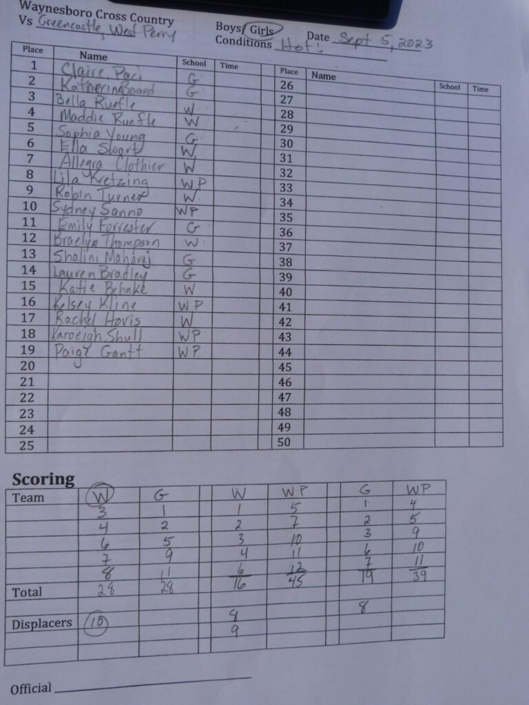 “Our sixth runner finished just before theirs,” said Waynesboro coach Jen Atkinson. “We’ve had one, maybe two races like this since I’ve coached here. This is my fifth year as head coach and my 32nd in cross country in Waynesboro.”