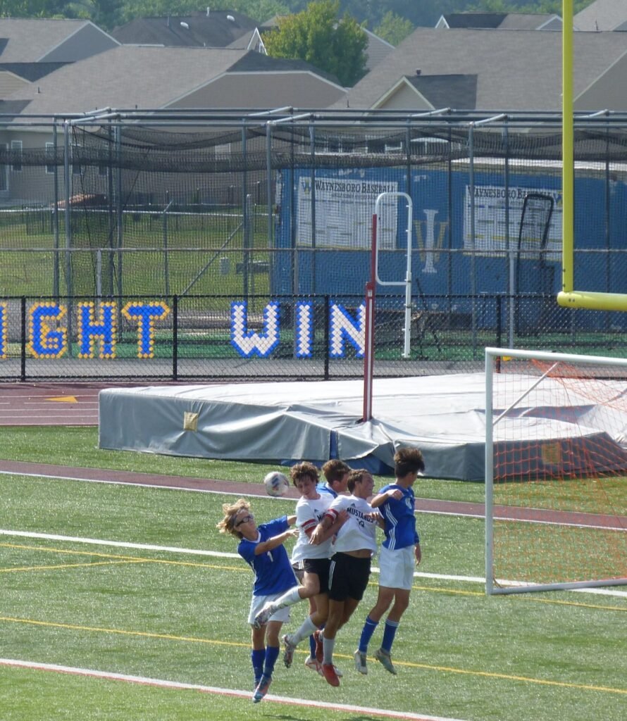 Much of the first half was played in Waynesboro’s end of the field. It was just a matter of time before the bubble burst, and it did, with a long goal by Joe Maloney Maloney’s boot came from about 40 yards away from the goal. He launched it perfectly, with a low trajectory but enough height to go over the hands of Waynesboro’s goalkeeper.