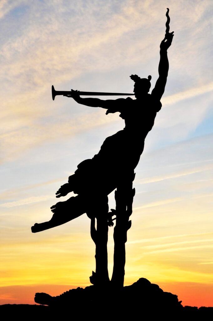 The statue portrays a wounded New Orleans gunner with the spirit of the confederacy dancing overhead while blowing a trumpet and holding a flaming cannon ball. But the tree that supports the symbolic feature has two trunks, recognizing both northern and southern sacrifices. The Louisiana Monument is an evocative work of art.