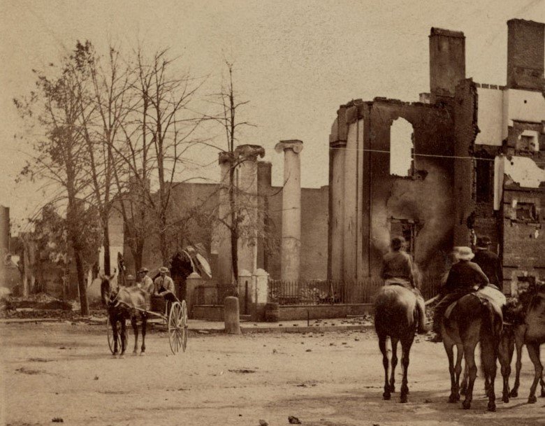 Quickly and methodically, other Confederates went house to house and set them ablaze. For extra drama, they used explosives to blow up the Franklin County Courthouse. One witness said: “tall, black columns of smoke rose up to the very skies…gigantic whirlwinds lifted burning articles into the air, intermingled with shrieks of women and children”. 2000 panic-stricken citizens lost their homes as over 500 buildings were completely destroyed. Damage was estimated to be $1.6 million dollars. In a few short hours, Chambersburg lay in ruins.